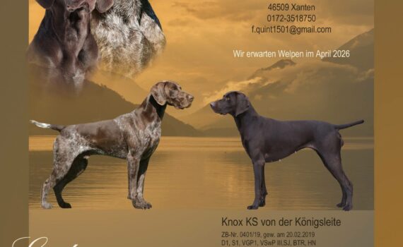 Die heutige Ultraschall-Untersuchung hat ergeben, dass Erle aufgenommen hat. Bei Interesse an Welpen melden Sie sich bitte bei Fritz Quint direkt. Wir drücken die Daumen, dass sich alles gut entwickelt.