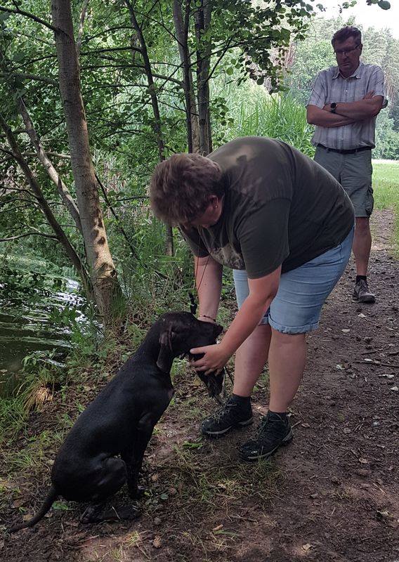 Auch mit Ablenkung muss das Ablegen oder das Sitzenbleiben klappen…..Danke an Stefan P., der uns beim Welpenkurs hilft