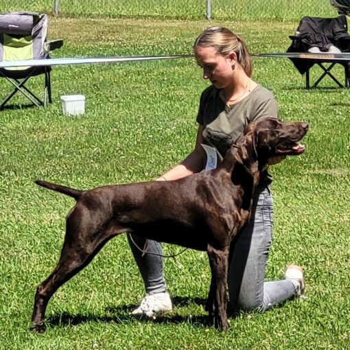 Ein schöner Schnappschuss von Manfred T. aus Lemförde. Die mittlerweilen 12jährige Dina KS beim Vorstehen und Sekundieren mit ihrer Tochter Jade von der Königsleite (D1, VJP76Pl, HN, LN, AZP3, VBR, LN, VBR-E, AZP1, AH, BTR, VGP 1 – 346P., – ein tolles Gespann! Danke für den schönen Ostergruß!