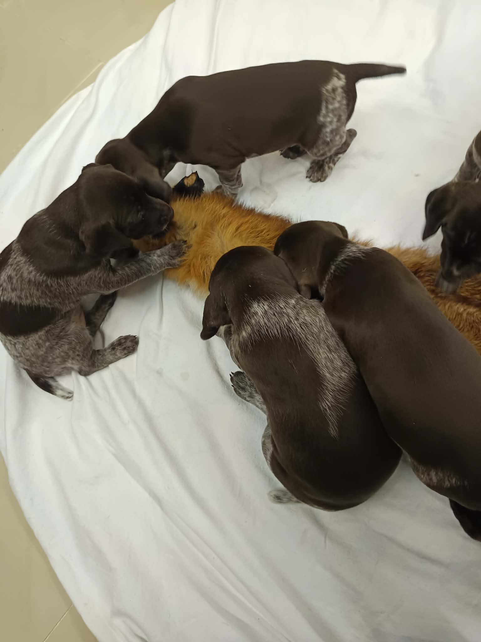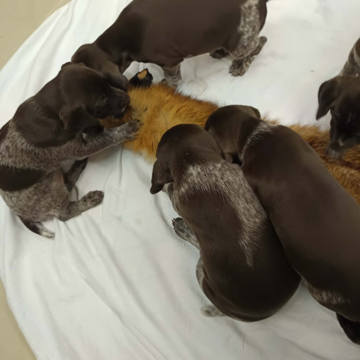 Jedes Jahr findet auf dem Campingplatz „Bärenschlucht“ in Pottenstein – Mitten in der Fränkischen Schweiz – das Grillfest der Jägervereinigung Pegnitz statt. Zehn Jahre lang war ich dort als Hundereferentin tätig. Im vergangen Jahr habe ich diese Aufgabe abgegeben. Doch ich wurde gebeten, die Rasse „Deutsch-Kurzhaar“ anläßlich der alljährlichen Pfostenschau vorzustellen. Dazu hatte ich einige „Deutsch-Kurzhaar“ eingeladen. Gekommen waren Bea, Blanka, Delta, Dexter und Flint. Vielen Dank an die Führer. Zum Abschluss gab es einen Schnappschuss für die örtliche Presse:
