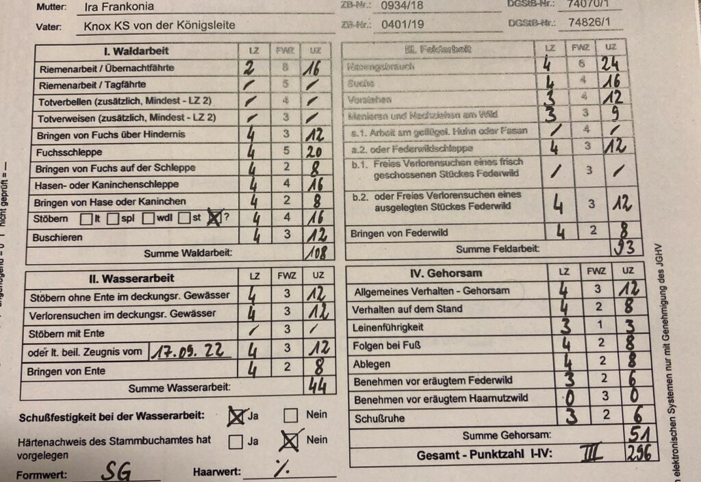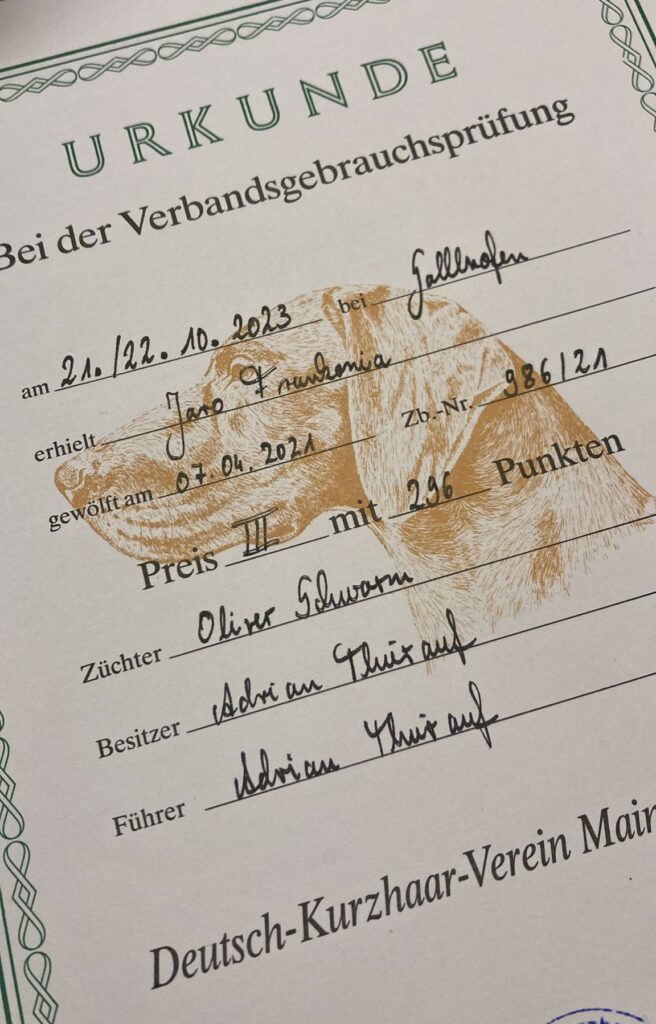 Aragorn vom Entenstrich – genannt Dachs – besteht die VGP beim JGHV Obermain mit 336 Punkten! Waidmannsheil!Aragorn tritt bei der VSwP 20 Stunden an und besteht diese mit einem tolle 1. Preis! Herzlichen Glückwunsch!!!Jura Frankonia mit ihrem Führer Maximilian Backert bestehen die VGP beim DK-Franken mit einem 1. Preis und 319 P.! Jura FrankoniaSuper gemacht – mit Bringselverweisen!Jaro Frankonia besteht die VGP im III. Preis mit 296 P…..Leider beim Schweiß 2 Abrufe…..das kostet Punkte und Schweiß…Herzlichen Glückwunsch – gut gemacht! VGP muss man erst mal bestehen !!!