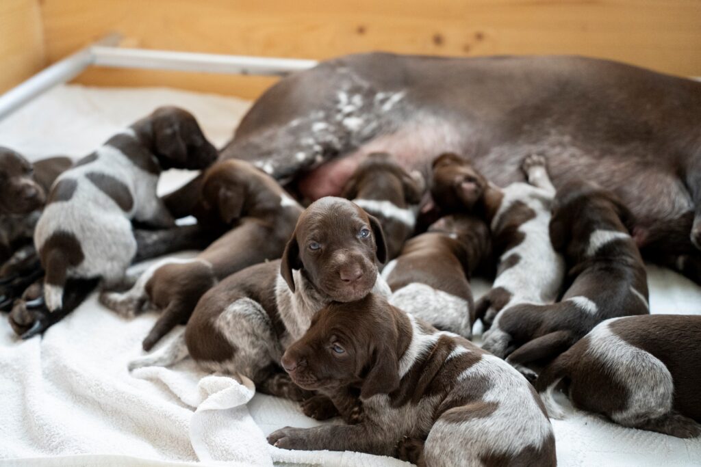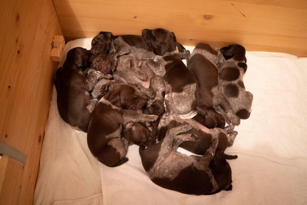 Wieder ein großer Wurf! Es hat einfach alles gepasst! Die Hündin kam zum rechten Zeitpunkt – ein Deckakt hat genügt.