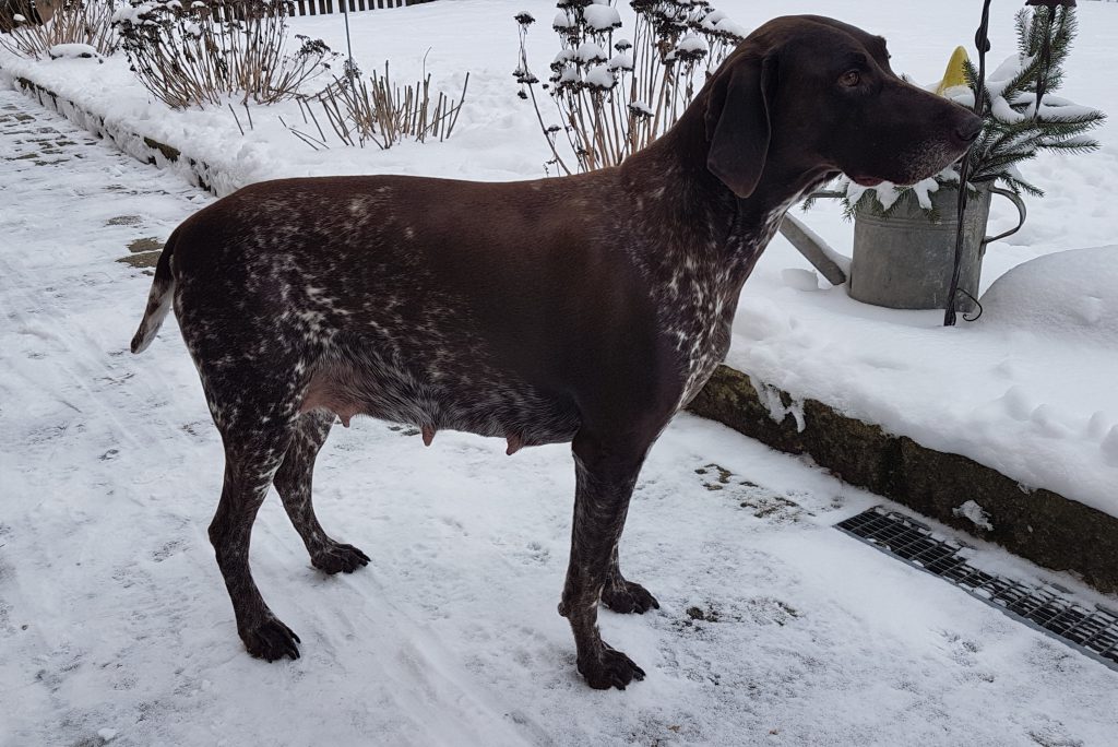 Allgemein Noch eine Woche…. von ilona|Veröffentlicht am 14. Februar 2019 Hanna ist eine brave Hundemama……das Bäuchlein wächst. Wir warten schon mit Spannung auf den Wurftermin….. Die Taille ist weg… Kraulen ist schön… Hannas Bäuchlein Bald kommen die Welpen…