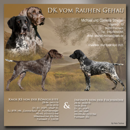 „Max“ ist eigentlich „Jester Anjules“ – aber zuhause bei Papa „Dexter KS von der Königsleite“ wird er eben „Max“ genannt. Er ähnelt seinem Papa wie ein Ei dem anderen. Max ist ziemlich genau vier Wochen älter als unsere H-Wurf-Welpen. Ich freu mich schon auf die gemeinsame Ausbildung.